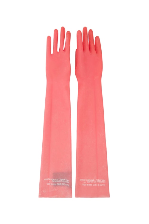 The glove, called the Calvin Klein “Rose” pink rubber gloves, is designed by famed Belgian fashion designer Raf Simons.